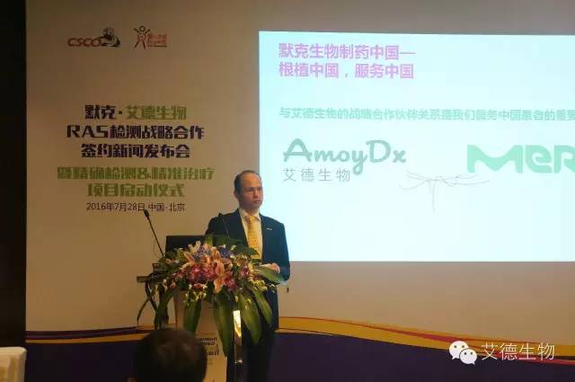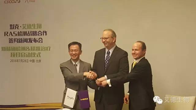 中國北京,2016年7月28日 - 總部位于中國廈門的腫瘤精準檢測領(lǐng)域領(lǐng)先企業(yè)艾德生物與全球領(lǐng)先的科技公司默克今日共同宣布,簽署了一項新的合作協(xié)議,啟動艾德生物-默克“精確檢測,精準治療”結(jié)直腸癌RAS檢測項目,該項目將致力于結(jié)直腸癌檢測中新型RAS液體活檢在全球的開發(fā)和推廣,以及腫瘤組織RAS檢測在中國大陸的推廣,為結(jié)直腸癌患者提供最佳的、及時的個體化診療方案,改善治療現(xiàn)狀,使患者獲得更多治療和生存獲益。“精確檢測,精準治療”項目中所應用的新型RAS液體活檢將采用計劃于2017年進入中國市場的艾德生物ADx-SuperARMS?技術(shù)。