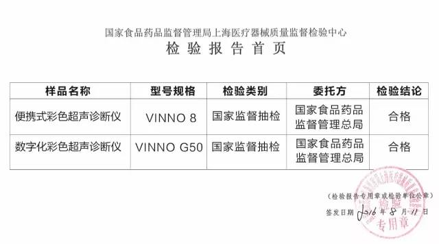 飛依諾參加抽檢的兩款產(chǎn)品為:VINNO 8便攜式超聲診斷儀與VINNO G50高端彩色多普勒超聲診斷儀。抽查中,重點(diǎn)檢驗(yàn)了探測深度、側(cè)向分辨力、軸向分辨力、盲區(qū)、切片厚度、橫向幾何位置精度、縱向幾何位置精度、周長和面積測量偏差、M模式時(shí)間顯示誤差、彩色血流模式下探測深度、彩色血流圖像與灰階圖像的重合性、血流方向識別、多普勒模式下探測深度、血流速度誤差、取樣區(qū)游標(biāo)準(zhǔn)確性等二十余項(xiàng)目。