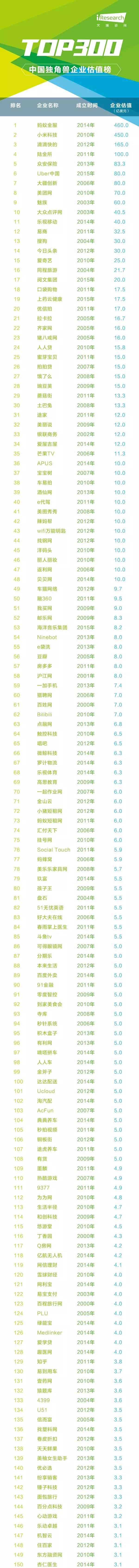 注 · 由于公開數(shù)據(jù)的透明度和準確性問題,部分企業(yè)的估值可能存在誤差,部分符合上榜要求的企業(yè)可能被遺漏。