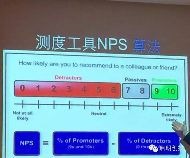 最后,談一下社群營(yíng)銷。有了好的產(chǎn)品自然會(huì)帶來(lái)好的口碑,甚至帶來(lái)粉絲。除了4百萬(wàn)的微信公眾號(hào)用戶,羅輯思維還有6萬(wàn)的付費(fèi)會(huì)員,他們是一群愛(ài)學(xué)習(xí)的人,經(jīng)常會(huì)自發(fā)的組織一些活動(dòng),幫助羅輯思維擴(kuò)散品牌。這種社群不容易形成,我覺(jué)得這是羅輯思維的成功。我們最近也投資了一家做最后一公里配送的公司,叫鄰趣。他們讓你要什么都可以立刻要,鄰趣小哥幫你送。用戶體驗(yàn)非??欤沟糜脩糇匀幌蛑苓叺呐笥淹扑],節(jié)省了不少?gòu)V告和補(bǔ)貼費(fèi)用。我建議創(chuàng)業(yè)者測(cè)試一下自己的產(chǎn)品的尖叫指數(shù),也叫NPS(Net Promoter Score),這個(gè)比簡(jiǎn)單的滿意度調(diào)查好很多。