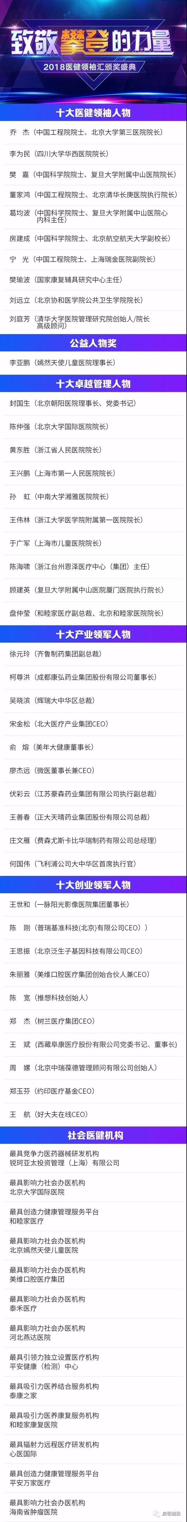 在過去五年的“年度健康界影響力評(píng)選”中,每次入選的人和機(jī)構(gòu)都儼然成為影響行業(yè)進(jìn)程的符號(hào)或里程碑。我們有理由相信,在所有獲獎(jiǎng)的人物中,他們或是中國(guó)醫(yī)健行業(yè)最具代表的卓越領(lǐng)袖,或是勇挑重?fù)?dān)的醫(yī)院管理者,或是懷揣夢(mèng)想的創(chuàng)業(yè)弄潮兒;我們同樣知道,所有贏得榮譽(yù)的醫(yī)健機(jī)構(gòu),都在破解行業(yè)痛點(diǎn)中勇敢前行……