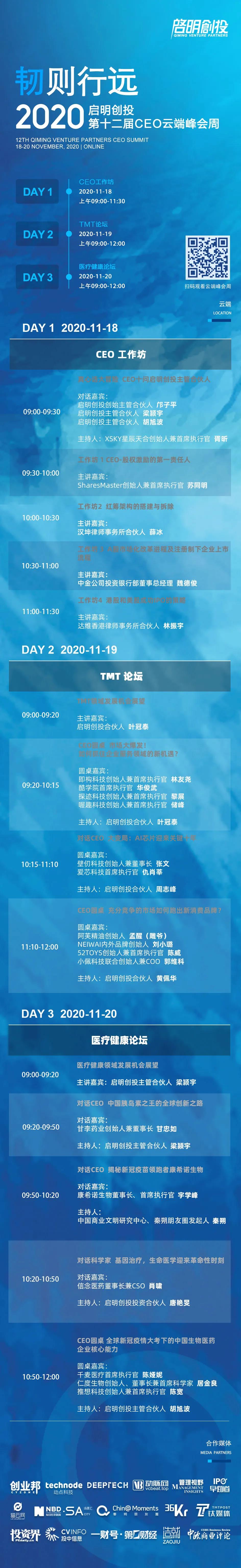 2020年11月18-20日,啟明創(chuàng)投歡迎您加入2020啟明創(chuàng)投第十二屆CEO云端峰會周,激蕩思想,共赴明日。