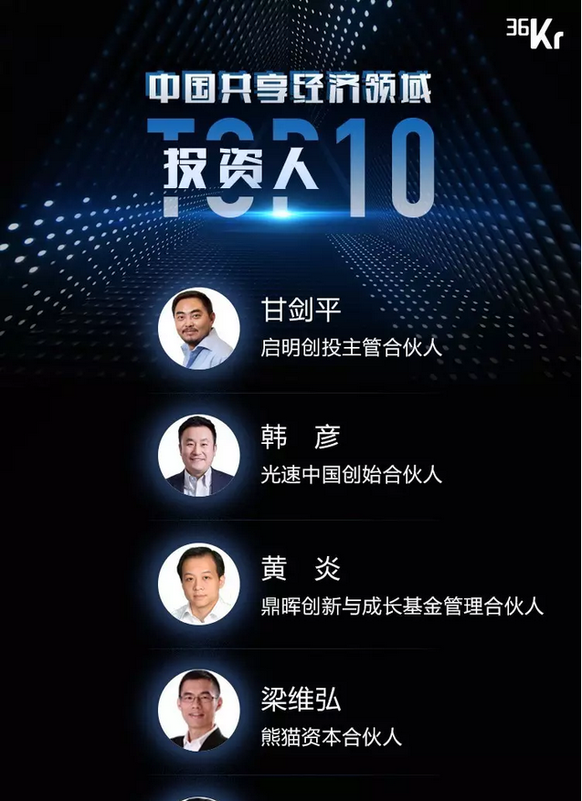 「中國(guó)共享經(jīng)濟(jì)領(lǐng)域10大投資人」