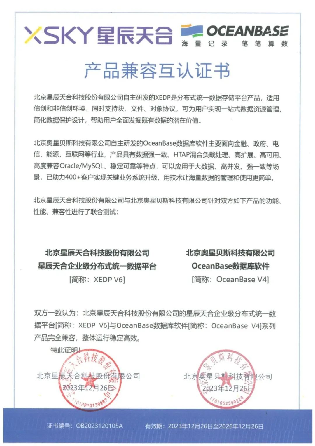 OceanBase V4新版本認(rèn)證