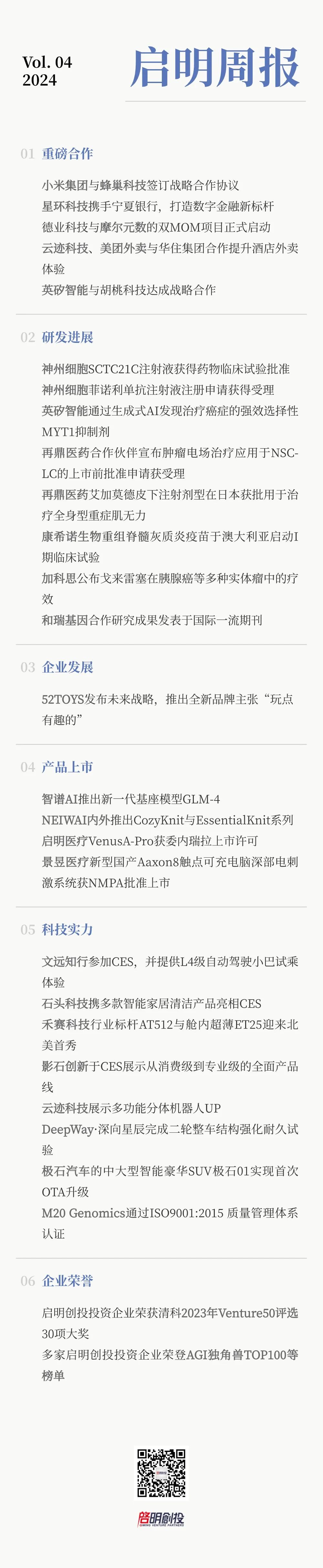 編者按:“啟明周報”欄目會在每周定期發(fā)布,盤點啟明創(chuàng)投投資企業(yè)的融資新聞、發(fā)展動態(tài)。