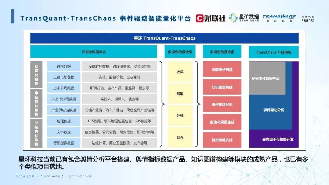 日前,啟明創(chuàng)投投資企業(yè)星環(huán)科技(688031.SH)與財聯(lián)社攜手發(fā)布多模態(tài)事件驅(qū)動量化平臺。雙方將在事件驅(qū)動型分析這一前沿智能投研及預(yù)訓練語言模型領(lǐng)域,建立長期和深入的合作伙伴關(guān)系。