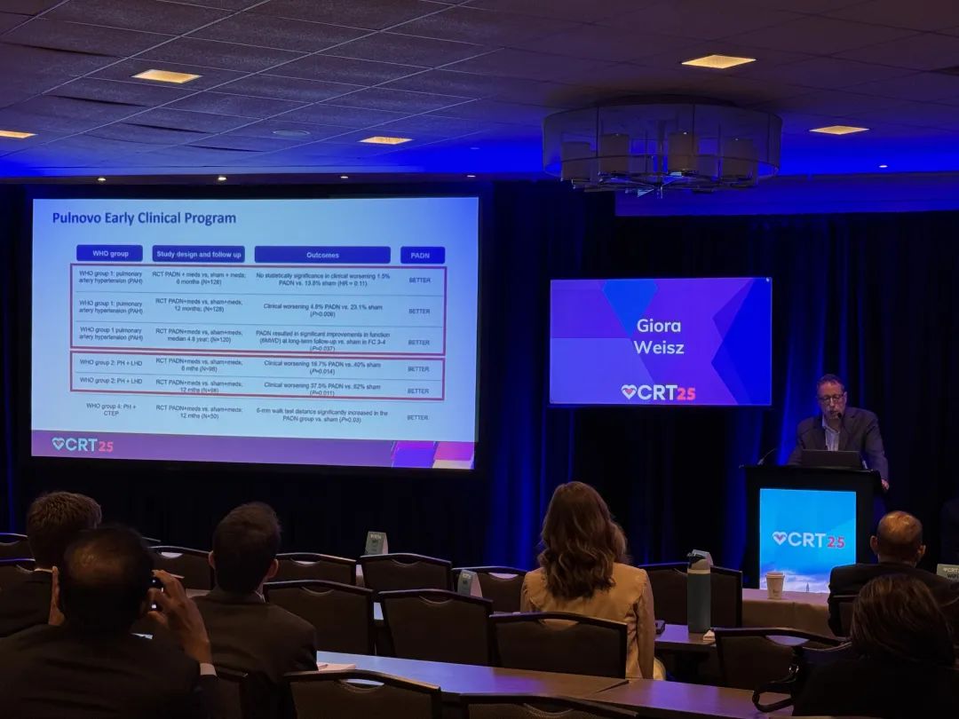 此后,在2025年美國心血管研究技術(shù)年會(CRT 2025)上,哥倫比亞大學(xué)、紐約長老會醫(yī)院導(dǎo)管室主任Giora Weisz博士專題介紹PADN治療左心疾病相關(guān)肺高壓(PH-LHD)的最新研究進(jìn)展,尤其是正在進(jìn)行的歐洲研究。PADN正在以扎實(shí)的循證醫(yī)學(xué)證據(jù),贏得國際認(rèn)可,并為全球患者提供真正可及、可用的創(chuàng)新解決方案。
