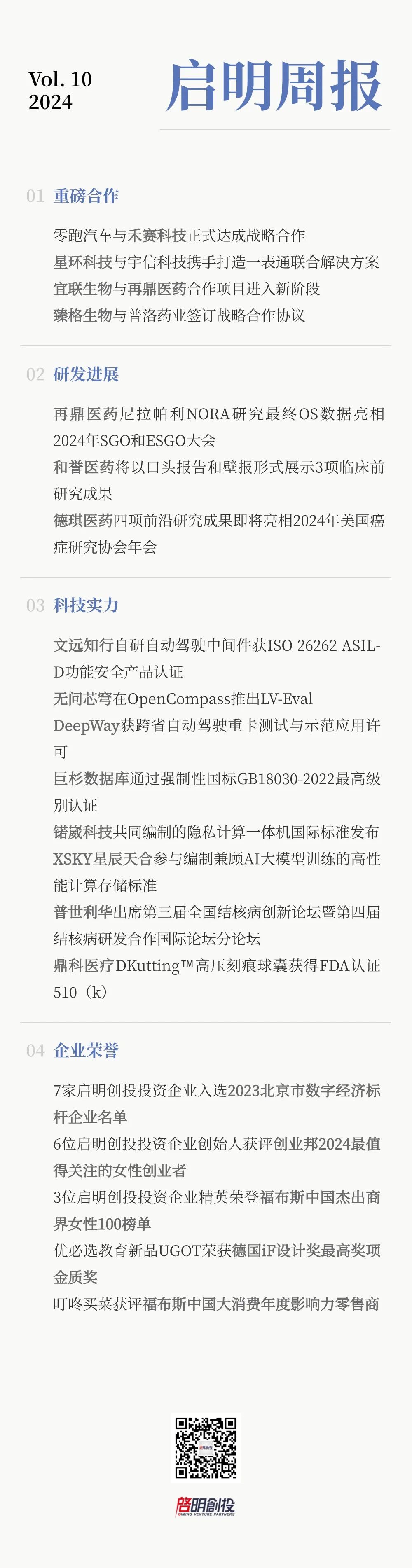 在科技與創(chuàng)新的浪潮中,創(chuàng)業(yè)者的每一步都值得記錄。啟明創(chuàng)投將一如既往地為創(chuàng)業(yè)者加速賦能,并和你一起關(guān)注啟明創(chuàng)投投資企業(yè)的里程碑時(shí)刻。