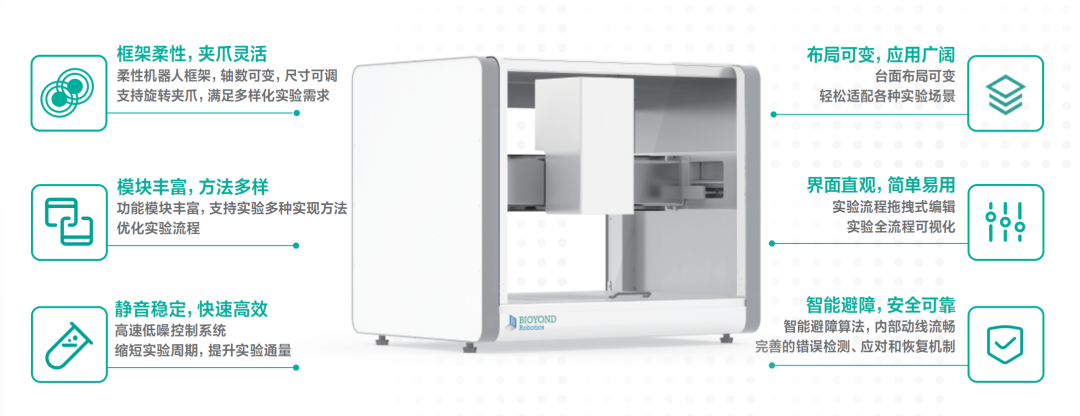 此次國內(nèi)首發(fā)的實驗室助手G系列采用模塊化設計,通過自研的直角坐標機器人與多樣化功能模塊進行高效交互,輕松串聯(lián)各種復雜的實驗流程,實現(xiàn)自動化無人值守運行。