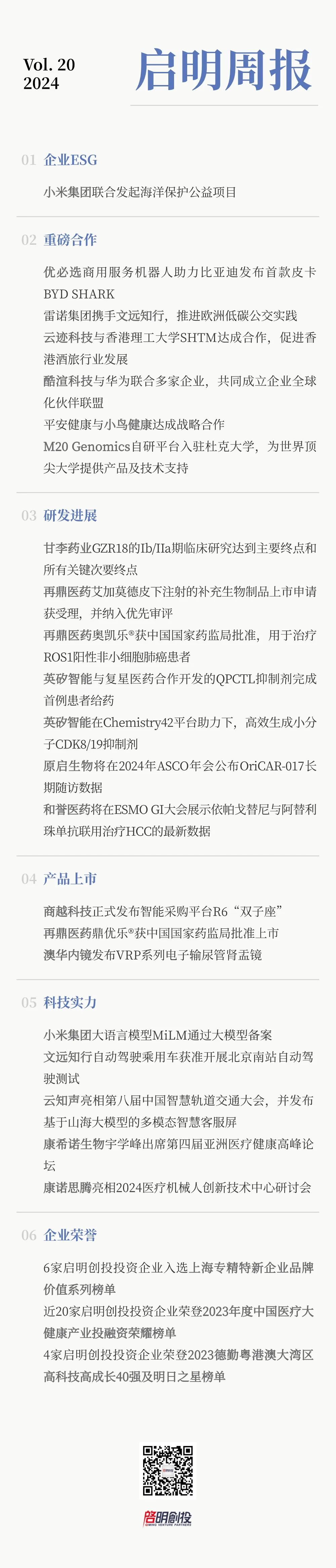 編者按:“啟明周報(bào)”欄目會(huì)在每周定期發(fā)布,盤點(diǎn)啟明創(chuàng)投投資企業(yè)的融資新聞、發(fā)展動(dòng)態(tài)。