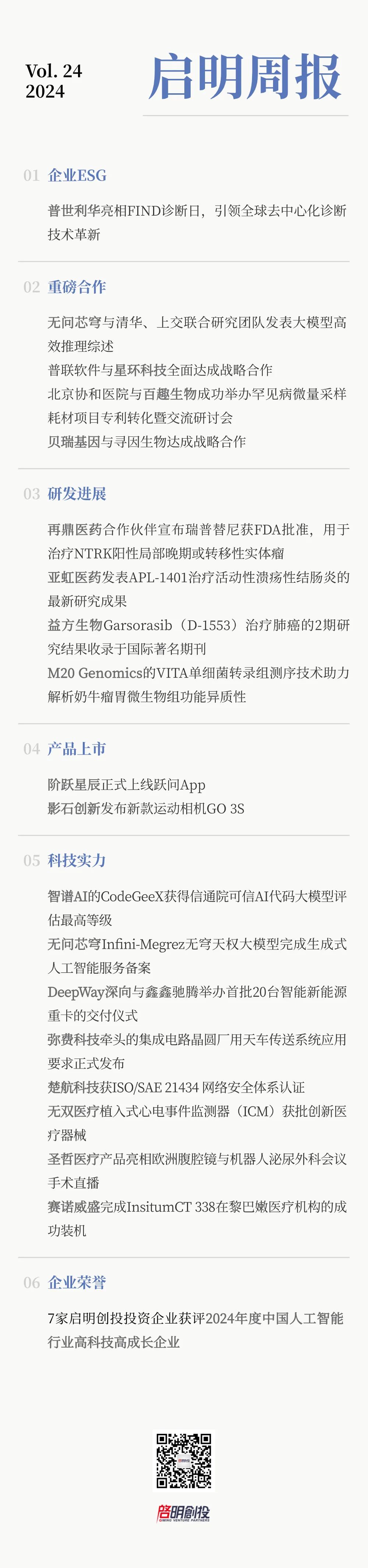 編者按:“啟明周報(bào)”欄目會(huì)在每周定期發(fā)布,盤點(diǎn)啟明創(chuàng)投投資企業(yè)的融資新聞、發(fā)展動(dòng)態(tài)。
