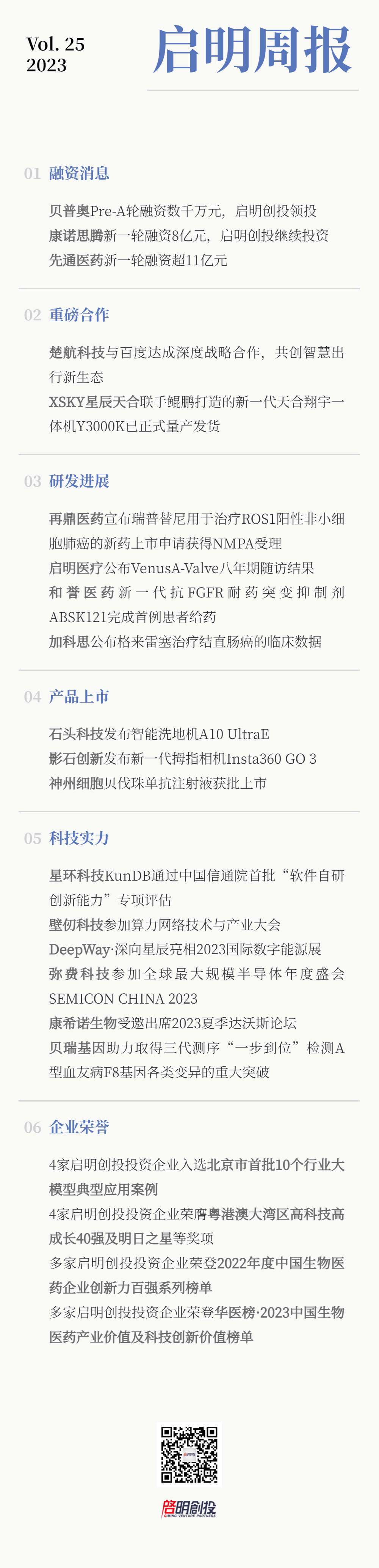 編者按:“啟明周報”欄目會在每周定期發(fā)布,盤點啟明創(chuàng)投投資企業(yè)的融資新聞、發(fā)展動態(tài)。