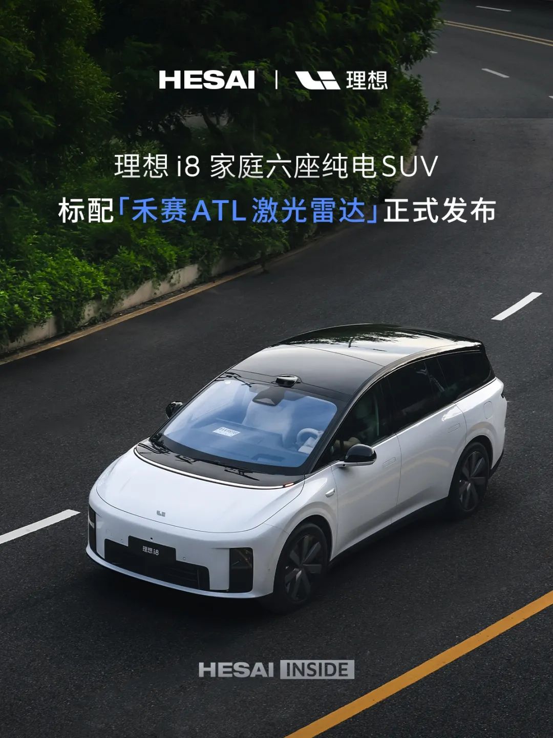 日前,理想汽車首款純電SUV理想i8正式發(fā)布。理想i8定位六座中大型純電SUV,全系標(biāo)配啟明創(chuàng)投投資企業(yè)禾賽科技(NASDAQ:HSAI)的ATL全天候激光雷達(dá)。