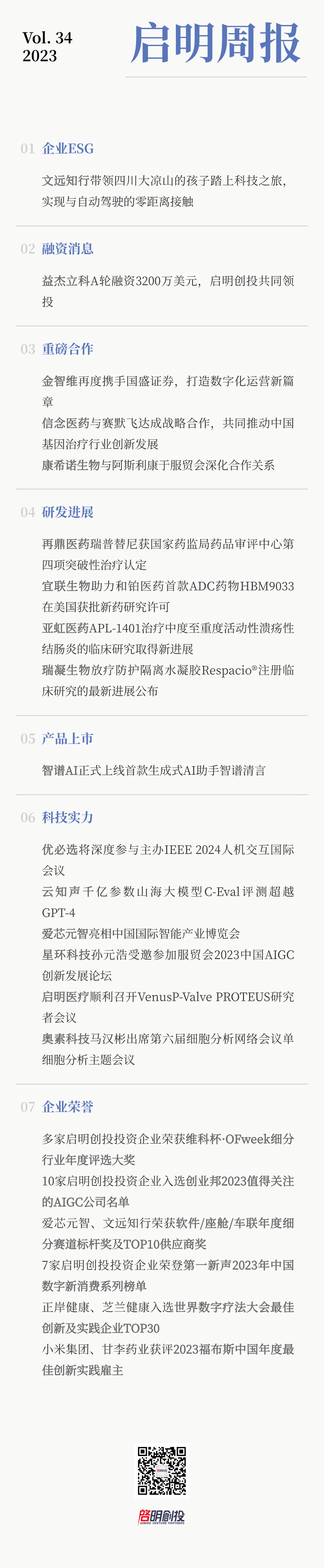 編者按:“啟明周報”欄目會在每周定期發(fā)布,盤點啟明創(chuàng)投投資企業(yè)的融資新聞、發(fā)展動態(tài)。