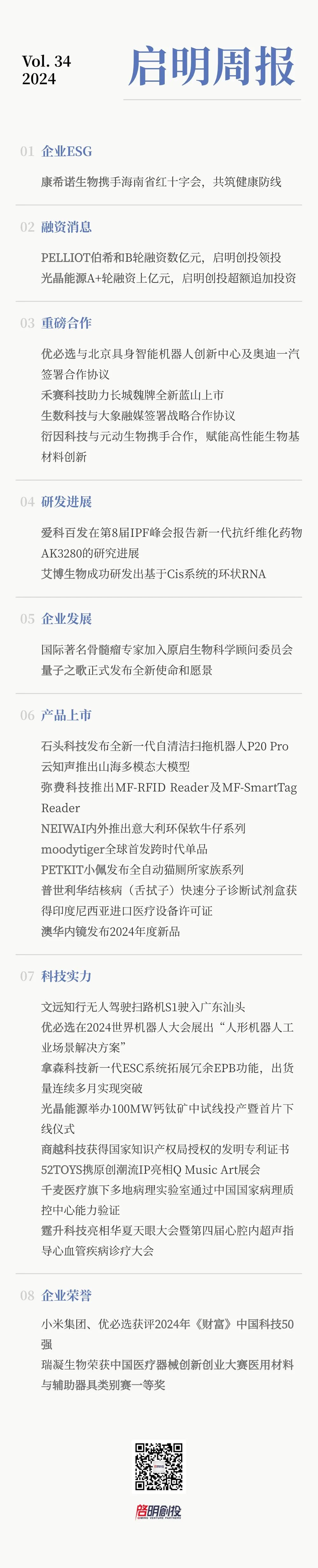 編者按:“啟明周報”欄目會在每周定期發(fā)布,盤點啟明創(chuàng)投投資企業(yè)的融資新聞、發(fā)展動態(tài)。