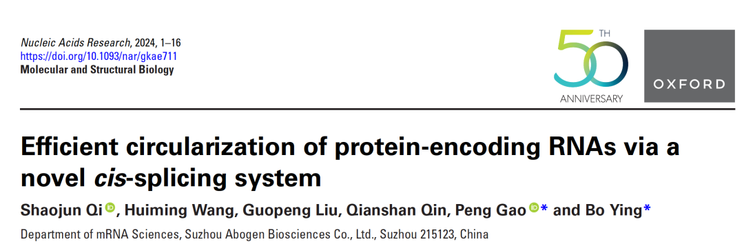 近日,啟明創(chuàng)投投資企業(yè)艾博生物于Nucleic Acids Research發(fā)表論文,研究關(guān)于其自主研發(fā)的高效RNA成環(huán)順式剪接系統(tǒng)(下稱“Cis系統(tǒng)”)。該系統(tǒng)制備的環(huán)狀RNA(circRNA)能大幅延長蛋白表達、降低天然免疫激活,并具有剪接位點設(shè)計靈活性等優(yōu)勢,擁有廣闊的應(yīng)用潛力。