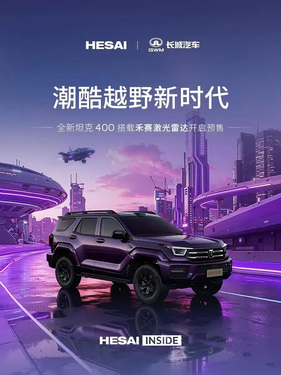 日前,標(biāo)配啟明創(chuàng)投投資企業(yè)禾賽科技(NASDAQ:HSAI, 02525.HK)激光雷達(dá)的全新坦克400預(yù)售發(fā)布會(huì)成功舉行。長(zhǎng)城汽車推出全新坦克400 Hi4-Z智享版和全新坦克400 Hi4-T智享版,全新坦克400依托機(jī)甲美學(xué)、硬核性能、豪華智能三大優(yōu)勢(shì),聚焦打造潮酷越野SUV價(jià)值標(biāo)桿,領(lǐng)銜開啟潮酷越野新時(shí)代。
