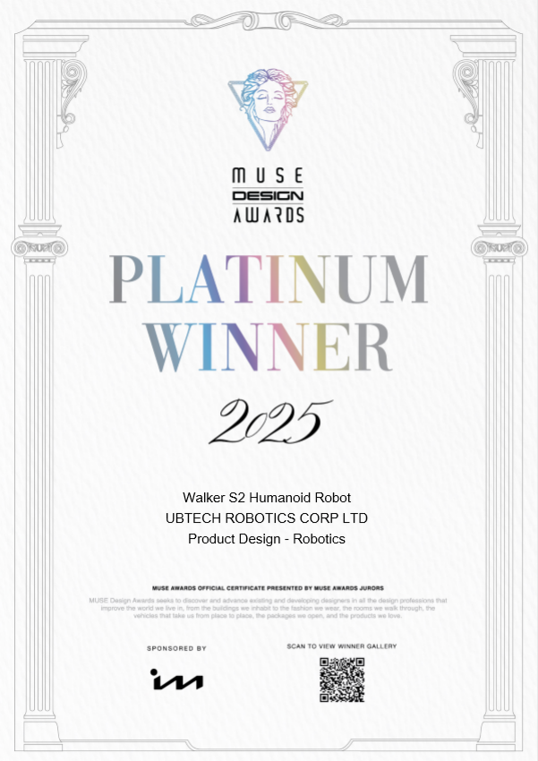 優(yōu)必選Walker S2榮獲MUSE設(shè)計(jì)最高獎(jiǎng)項(xiàng)