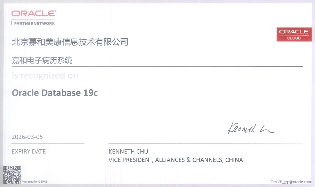 嘉和美康獲Oracle Database 19c官方認(rèn)證
