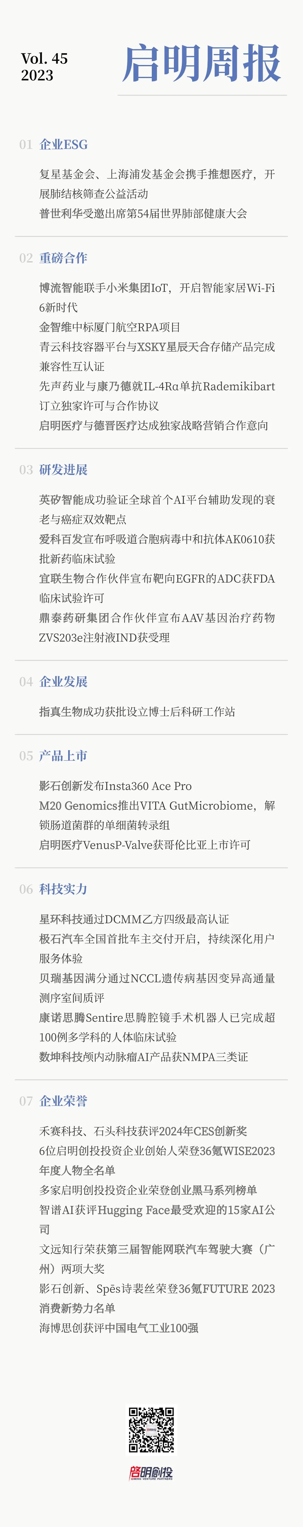 編者按:“啟明周報”欄目會在每周定期發(fā)布,盤點啟明創(chuàng)投投資企業(yè)的融資新聞、發(fā)展動態(tài)。