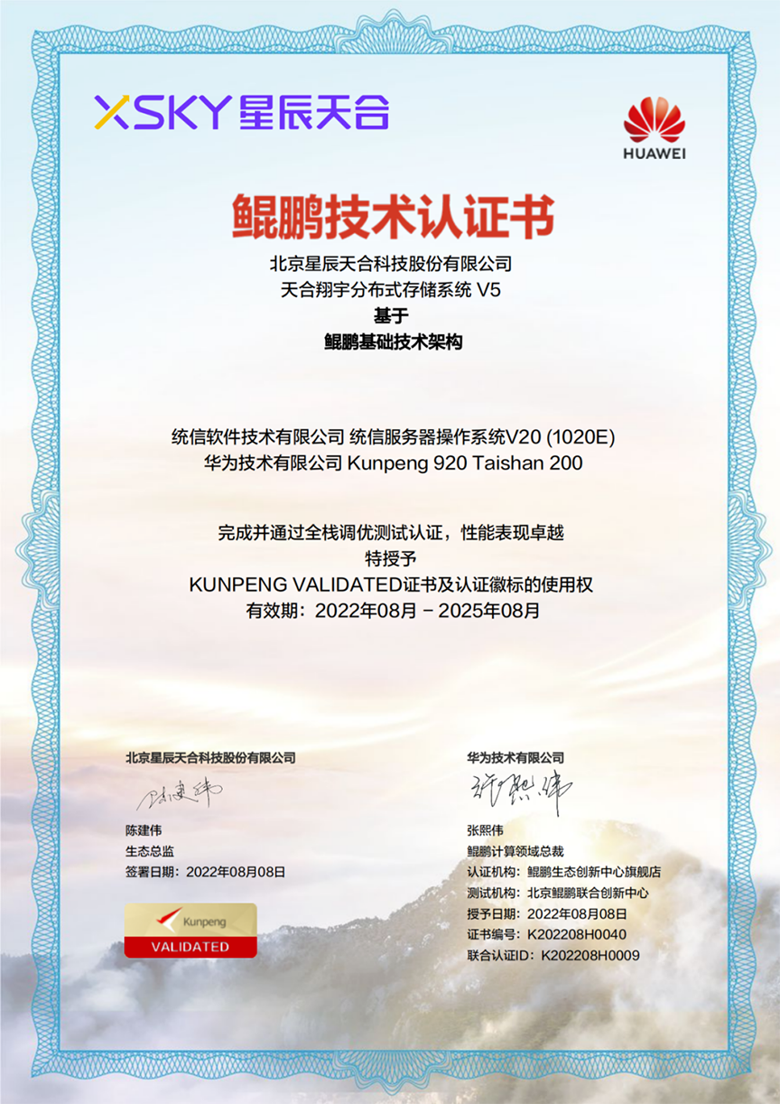 近日,啟明創(chuàng)投投資企業(yè)XSKY星辰天合的天合翔宇分布式存儲系統(tǒng)V5獲得鯤鵬技術(shù)認證。