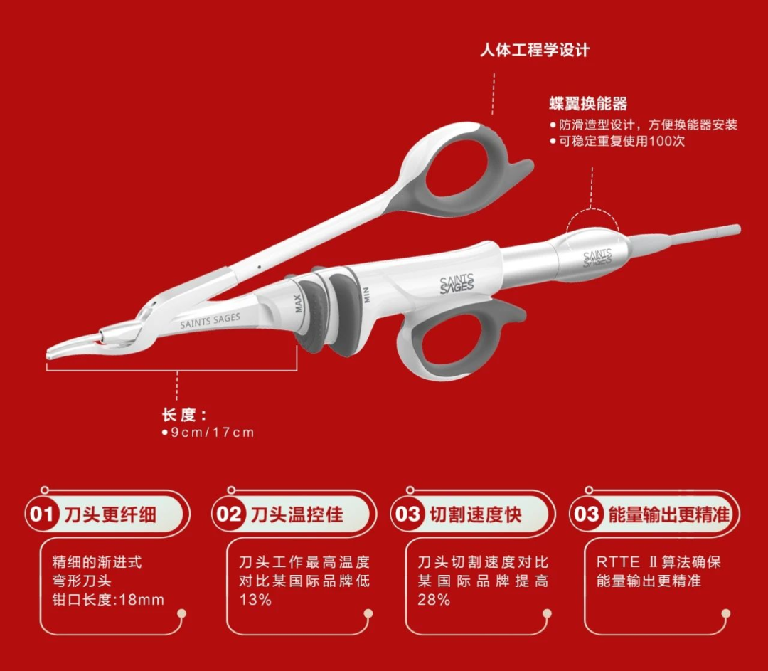 繼全球首創(chuàng)便攜式一體化超聲刀SA10 SASD系列和國(guó)產(chǎn)原研、比肩國(guó)際的SA01 SAS系列超聲軟組織切割止血系統(tǒng)之后,SanAgile?圣俐?SASG系列一次性使用超聲刀頭(剪式超聲刀頭)延續(xù)圣哲能量器械的創(chuàng)新基因,從刀頭纖細(xì)設(shè)計(jì)、術(shù)中良好溫控到符合人體工程學(xué)的蝶翼?yè)Q能器設(shè)計(jì),助力外科醫(yī)生進(jìn)行手術(shù)。