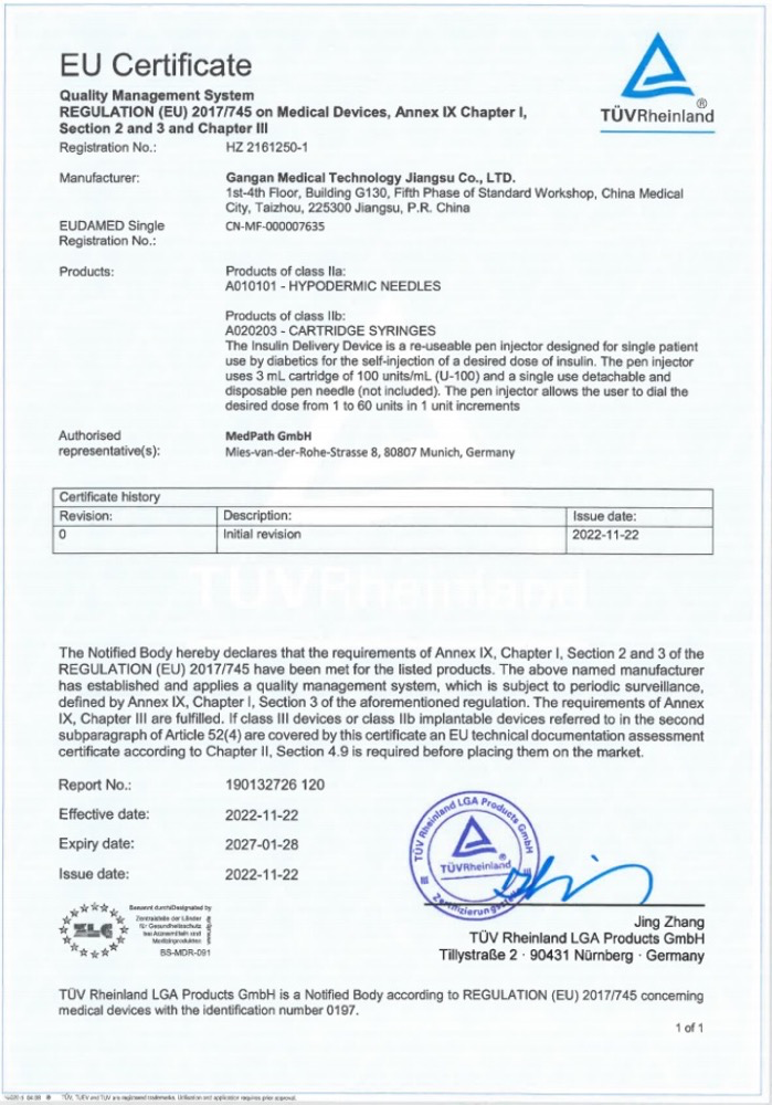 甘甘醫(yī)療此次獲得MDR證書,充分展現(xiàn)了其產(chǎn)品質(zhì)量和研發(fā)技術(shù)的高標(biāo)準(zhǔn)水平,同時體現(xiàn)了國際權(quán)威認(rèn)證機(jī)構(gòu)對甘甘醫(yī)療所研發(fā)生產(chǎn)醫(yī)療器械的安全性、有效性以及產(chǎn)品質(zhì)量管理體系的極大認(rèn)可。