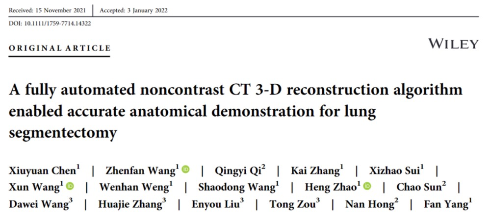 近日,啟明創(chuàng)投投資企業(yè)推想醫(yī)療與北京大學(xué)人民醫(yī)院合作完成的論文被知名期刊Thoracic Cancer收錄。