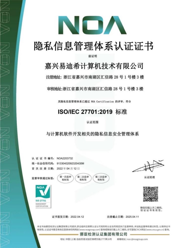 易迪希順利通過(guò)ISO/IEC 27701認(rèn)證