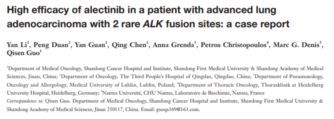 近日,山東省腫瘤醫(yī)院李艷教授與啟明創(chuàng)投投資企業(yè)和瑞基因合作,通過DNA+RNA雙重檢測,在一例肺腺癌患者腫瘤樣本中發(fā)現(xiàn)了罕見LTBP1-ALK和HIP1-ALK雙融合,通過ALK-TKIs治療,患者獲得了良好療效。相關(guān)研究成果發(fā)表在國際期刊Translational Lung Cancer Research。