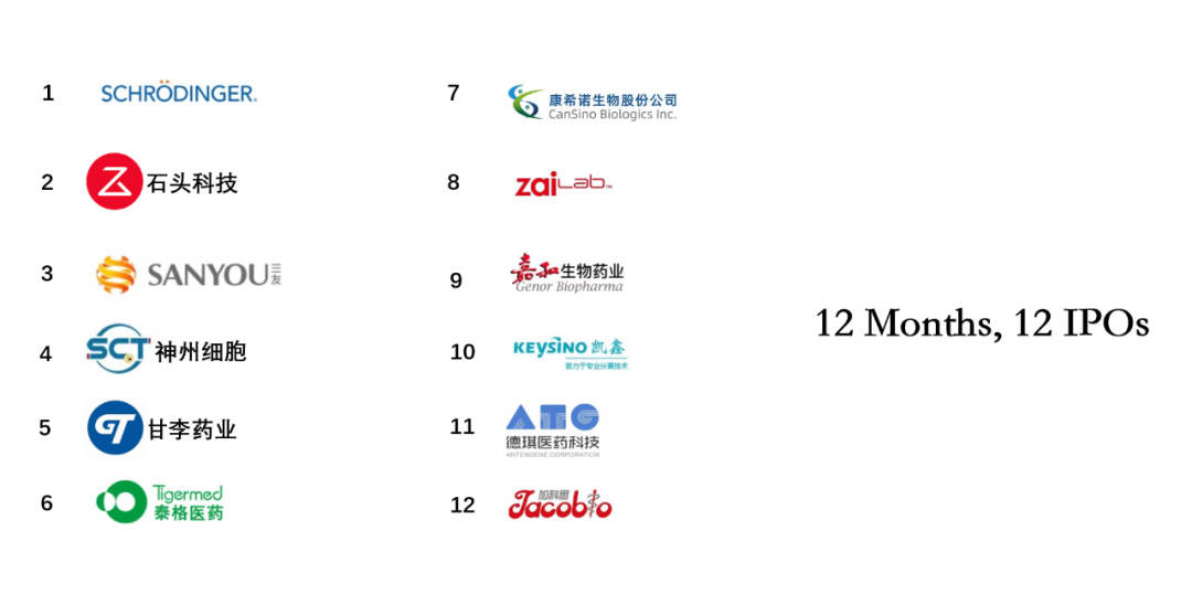 我們看看這張圖,這是啟明創(chuàng)投在今年12個(gè)月里實(shí)現(xiàn)的12個(gè)IPO,這是挺好的數(shù)字——12個(gè)月12個(gè)IPO。我想正好可以花點(diǎn)時(shí)間簡單介紹一下這12個(gè)IPO。
