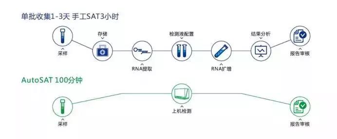 該產(chǎn)品系仁度生物首款引入全自動(dòng)核酸檢測流水線概念的設(shè)備,其顛覆了傳統(tǒng)分批模式,實(shí)現(xiàn)流水線式檢測,樣本隨到隨檢,急診樣本可優(yōu)先處理。相信它將成為分子診斷真正走向大規(guī)模臨床應(yīng)用的轉(zhuǎn)折點(diǎn)。AutoSAT實(shí)現(xiàn)了全流程自動(dòng)化,簡化操作流程的同時(shí),大幅降低了對(duì)應(yīng)用場景的要求,將分子診斷的臨床應(yīng)用拓展至門急診。