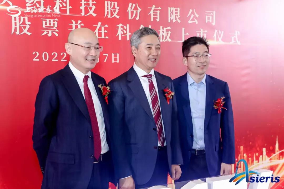 泰格醫(yī)藥董事長葉小平,亞虹醫(yī)藥創(chuàng)始人、董事長、首席執(zhí)行官潘柯,啟明創(chuàng)投主管合伙人胡旭波于上市慶祝儀式現(xiàn)場合影