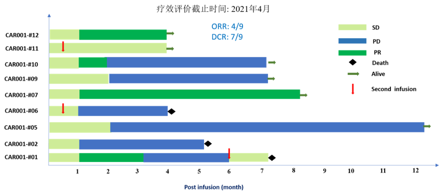 此外,最近的一個新的爬坡劑量的首個患者也獲得了PR(自ASCO數(shù)據(jù)發(fā)布后,又新增了一位部分緩解的病人)。目前,這些病患目前仍在持續(xù)隨訪中?!霸谕砥趯嶓w腫瘤治療中,這個緩解時間還是相當(dāng)長的,腫瘤減小的幅度也是非常驚人的,這個結(jié)果令團隊很受鼓舞,我們期待在進一步的產(chǎn)品開發(fā)和臨床研究過程中,獲得更好的數(shù)據(jù)。