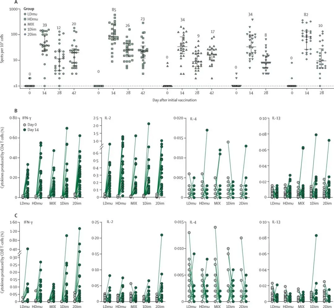 這項研究結(jié)果是全球首個公布的霧化給藥新冠疫苗臨床數(shù)據(jù)。這一一期臨床試驗于武漢中南醫(yī)院進行,分為肌肉注射、霧化吸入和兩者同時接種等多個組別進行。