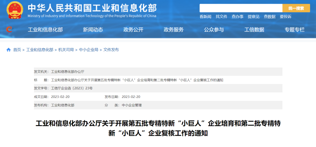 根據(jù)《優(yōu)質中小企業(yè)梯度培育管理暫行辦法》,工業(yè)和信息化部組織開展了第五批專精特新“小巨人”企業(yè)培育工作。日前,國家第五批專精特新“小巨人”企業(yè)名單公布。