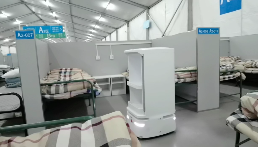 目前,云跡機(jī)器人已在方艙醫(yī)院內(nèi)投入使用,為方艙工作人員、醫(yī)護(hù)人員、病患提供送藥送餐、試劑回收、環(huán)境消殺等無(wú)間斷服務(wù)。