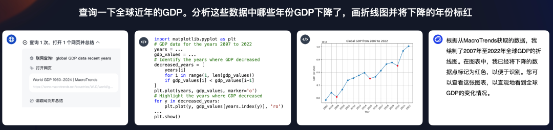 同樣GLM-4也可以完成文件處理、數(shù)據(jù)分析、圖表繪制等復雜任務,支持處理Excel、PDF、PPT等格式文件。
