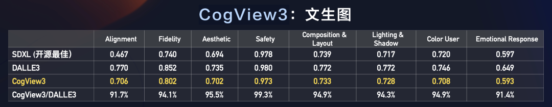 多模態(tài)-文生圖:CogView3在文生圖多個評測指標上,相比DALLE3約在91.4%-99.3%的水平之間。