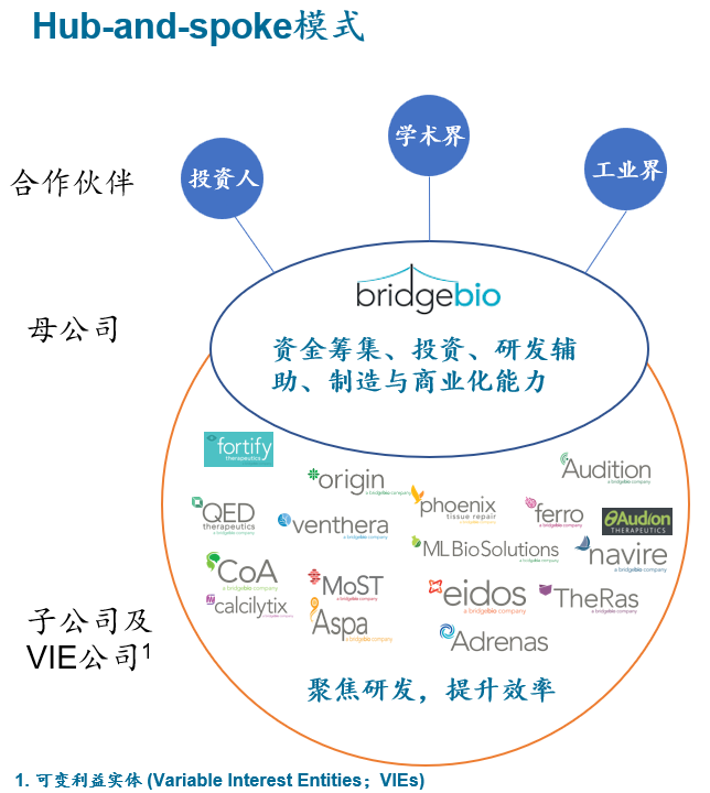 這家公司的Hub-and-spoke模式下的子公司均享有半自治運營權(quán),共享母公司資源,同時各自專注于更擅長的業(yè)務(wù)——這種模式不同于傳統(tǒng)的針對某些疾病聚集相關(guān)科學(xué)家與投資人于一體的模式,可以極大地加快研發(fā)效率。