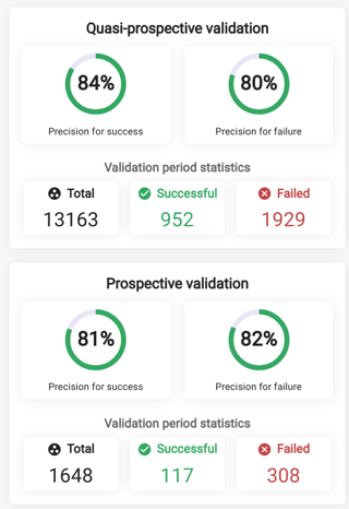任峰:在inClinico中我們進(jìn)行四種類型的驗證:1)回顧性的驗證,使用整個歷史數(shù)據(jù)集中的90%進(jìn)行訓(xùn)練,并將另10%用于測試;2)準(zhǔn)前瞻性驗證,使用2018年-2020年的數(shù)據(jù)進(jìn)行訓(xùn)練,使用在2020年以后數(shù)據(jù)進(jìn)行測試;3)前瞻性驗證,我們對某些臨床試驗展開預(yù)測,并將結(jié)論發(fā)表在預(yù)印本網(wǎng)站上,然后等待該臨床試驗得到一個結(jié)果;4)與制藥公司的合作伙伴進(jìn)行前瞻性研究,這是最困難的一種,你必須和合作伙伴一起等待數(shù)年。而且很多事情都可能出錯。在2019年,我們與一家跨國制藥公司進(jìn)行了驗證合作。他們在年初制定了10項試驗,在2020年12月,其中8項試驗被準(zhǔn)確預(yù)測。