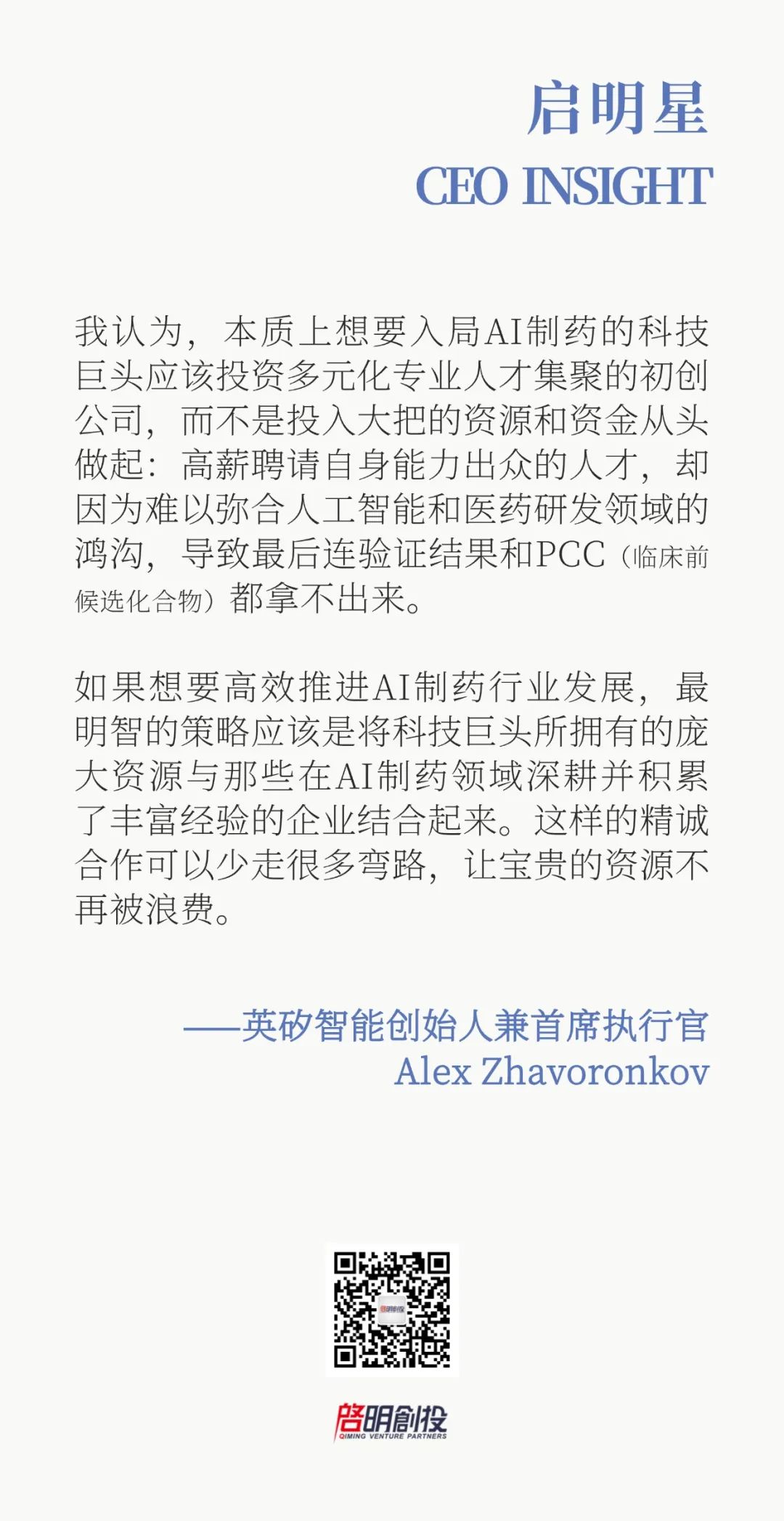 Alex Zhavoronkov:互聯(lián)網(wǎng)巨頭們擁有強烈的入局意愿和豐富的資源,但缺乏行業(yè)經(jīng)驗。很遺憾,目前為止,許多互聯(lián)網(wǎng)背景的AI制藥公司都是雷聲大雨點小。