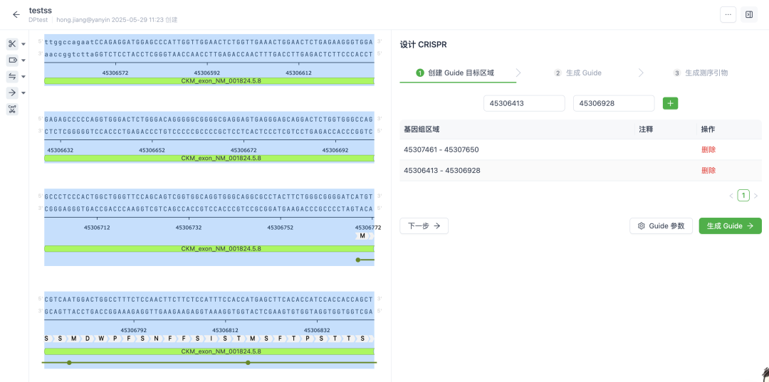 作為衍因智研云平臺(tái)分子生物學(xué)模塊的重磅升級(jí),新推出的“CRISPR工具”集成了篆碼生物在基因編輯酶領(lǐng)域的深厚積累與衍因科技強(qiáng)大的云端科研協(xié)作能力,為研究人員提供了一站式的CRISPR-Cas9系統(tǒng)gRNA(向?qū)NA)設(shè)計(jì)與分析解決方案,顯著提高基因編輯實(shí)驗(yàn)的成功率和效率。