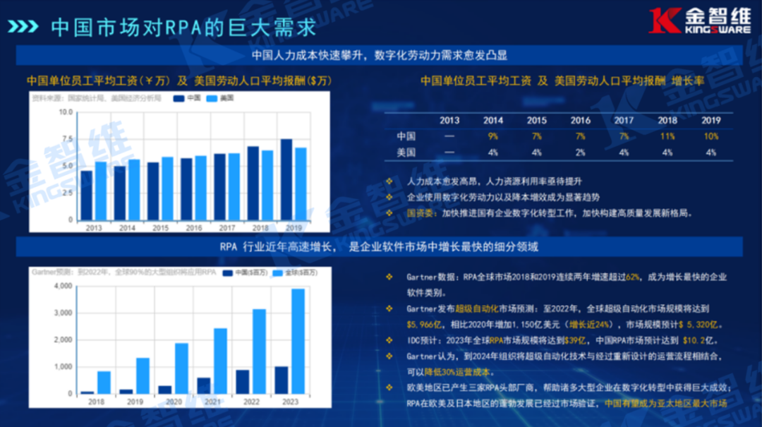 此輪融資將主要用于進一步推動渠道生態(tài)和AI技術合作生態(tài)的建設,提升RPA、AI產品技術研發(fā)能力,加強市場推廣與產品運營,加速行業(yè)研究院與銷售團隊的建設以及渠道體系的搭建,繼續(xù)擴大金智維產品技術和行業(yè)標桿客戶拓展的領先優(yōu)勢,持續(xù)領跑國內RPA賽道。