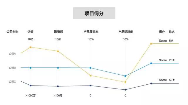 我們基于投資項目的估值、融資總額、公司產(chǎn)品的覆蓋率、活躍度等維度對投資項目進(jìn)行評分,然后根據(jù)投資機(jī)構(gòu)在投資項目中的參與度(輪次/領(lǐng)跟投/投資額)計算機(jī)構(gòu)在投資項目中的得分。