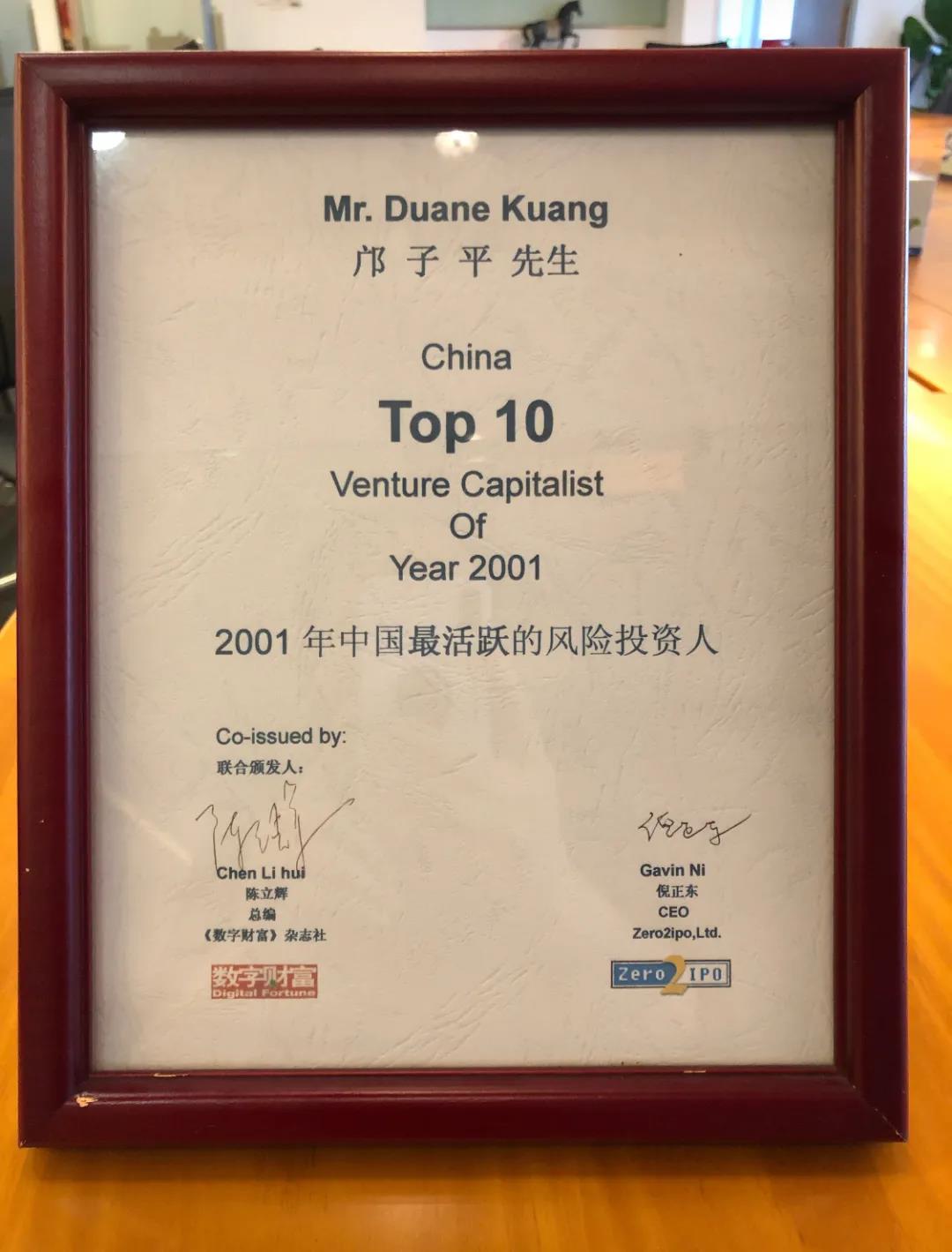 啟明創(chuàng)投創(chuàng)始主管合伙人鄺子平于2001年榮膺清科中國(guó)最活躍的風(fēng)險(xiǎn)投資人TOP10
