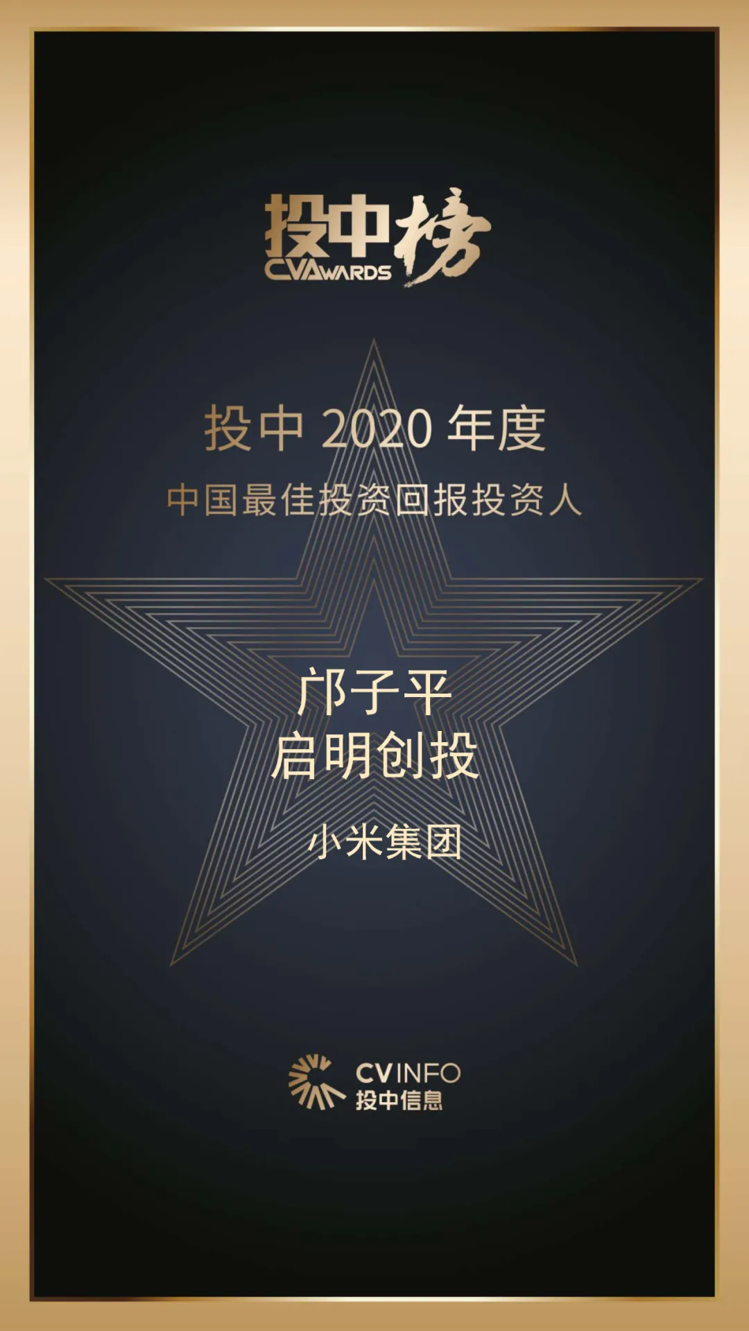鄺子平獲評投中年度中國最佳投資回報投資人。