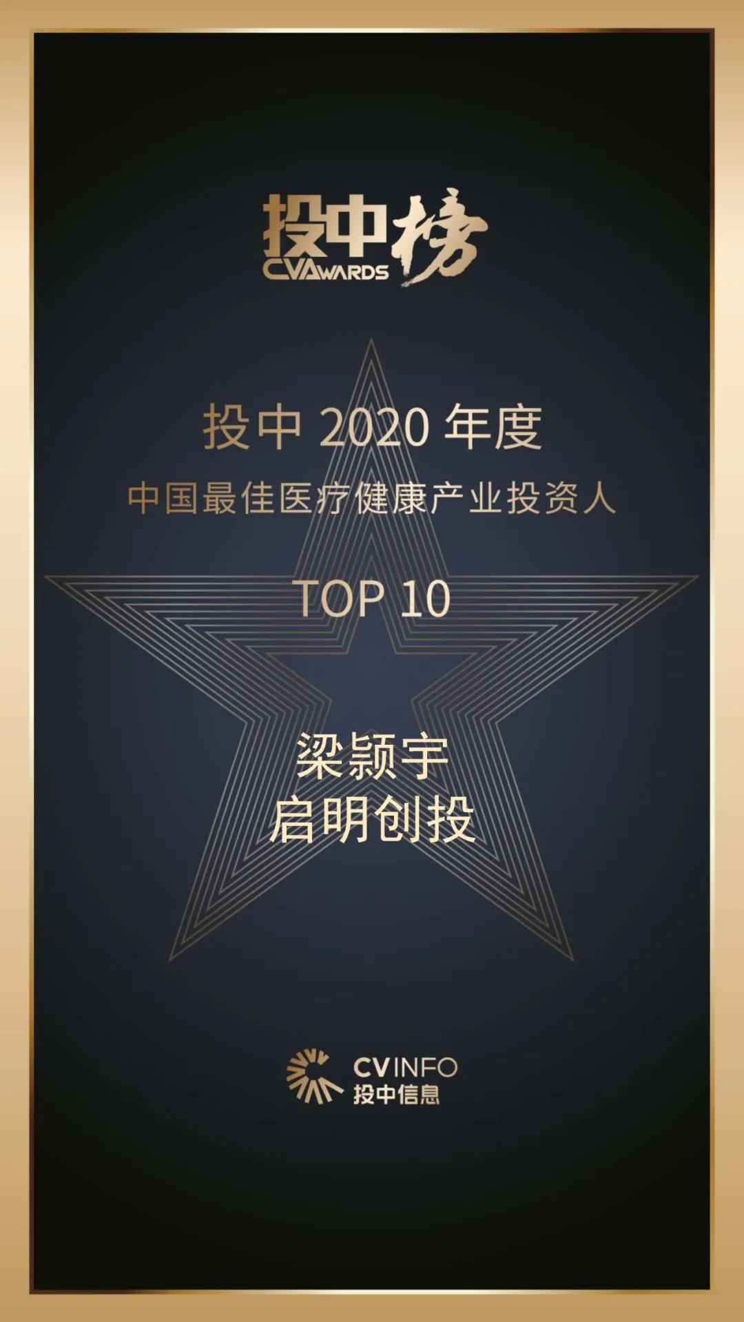 梁颕宇獲評投中年度中國醫(yī)療健康產(chǎn)業(yè)投資人TOP10。