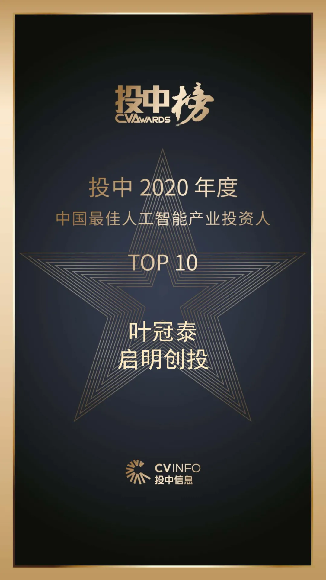 啟明創(chuàng)投合伙人葉冠泰獲評投中年度中國最佳人工智能產(chǎn)業(yè)投資人Top10。