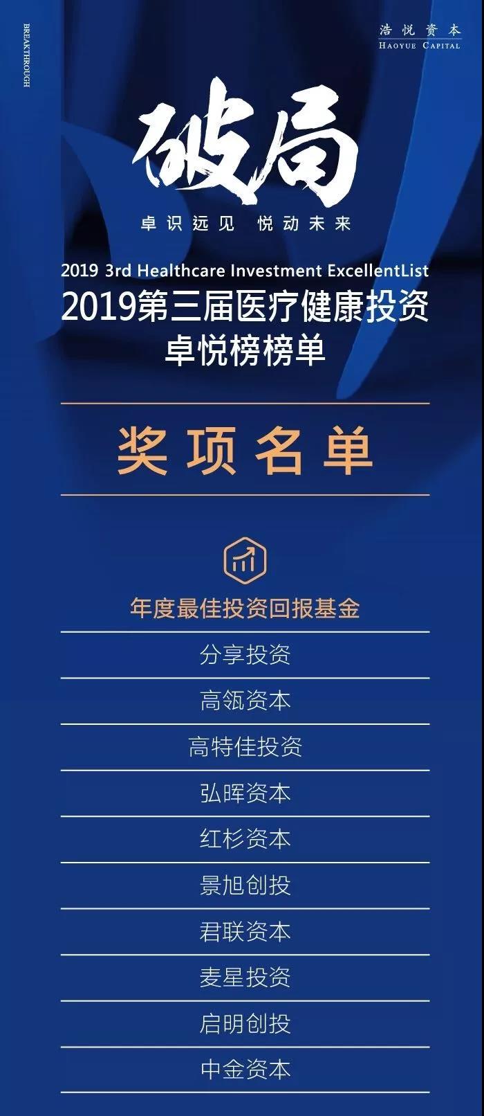 啟明創(chuàng)投所投啟明醫(yī)療獲評(píng)年度創(chuàng)新醫(yī)療器械最佳投資案例,所投樹蘭醫(yī)療獲評(píng)年度醫(yī)療服務(wù)最佳投資案例,所投妙手醫(yī)生、推想科技、微醫(yī)獲評(píng)年度醫(yī)療新技術(shù)最佳投資案例。